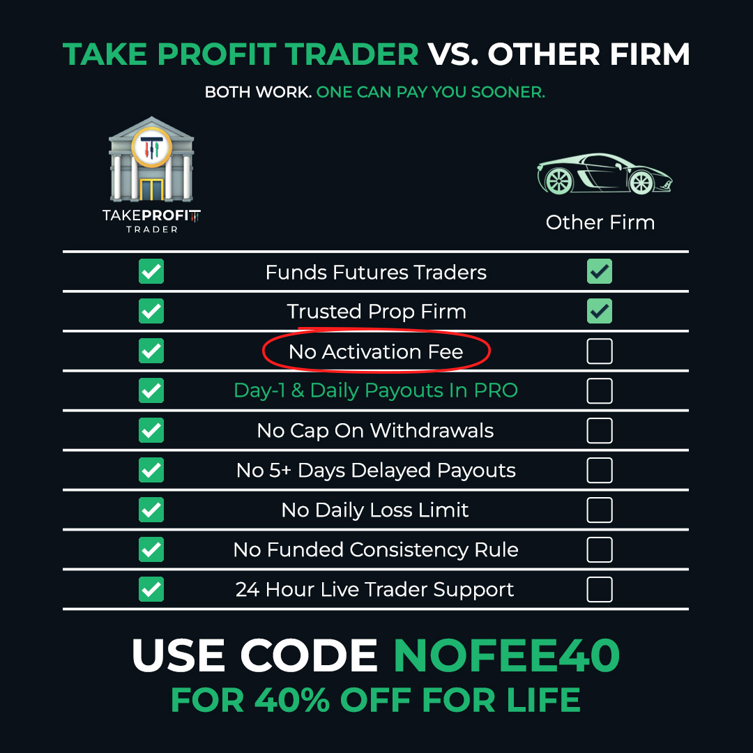 Right now during our limited-time NOFEE40 promo, not only do you get a 40% lifetime discount on all test accounts, but you’ll also get to take advantage of our newest program update - End of Day Drawdown in PRO+ Live-Market Accounts!