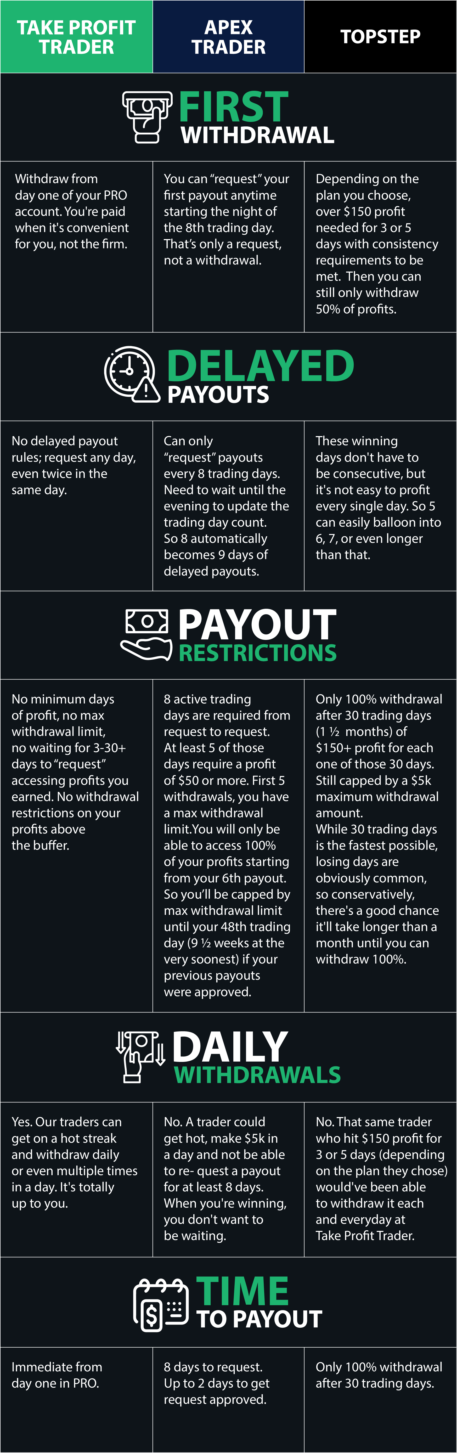 “Take Profit's trading rules are designed to help you pass the challenge and start making money as soon as possible. Being able to withdraw earnings daily is such a huge perk.”