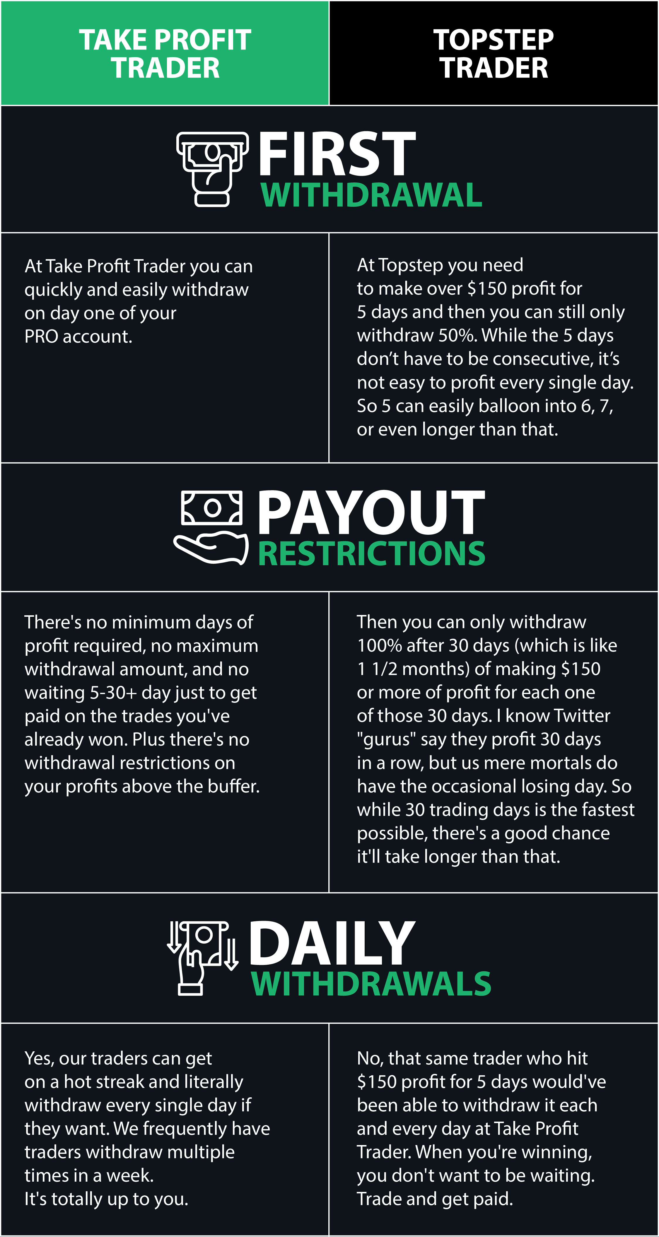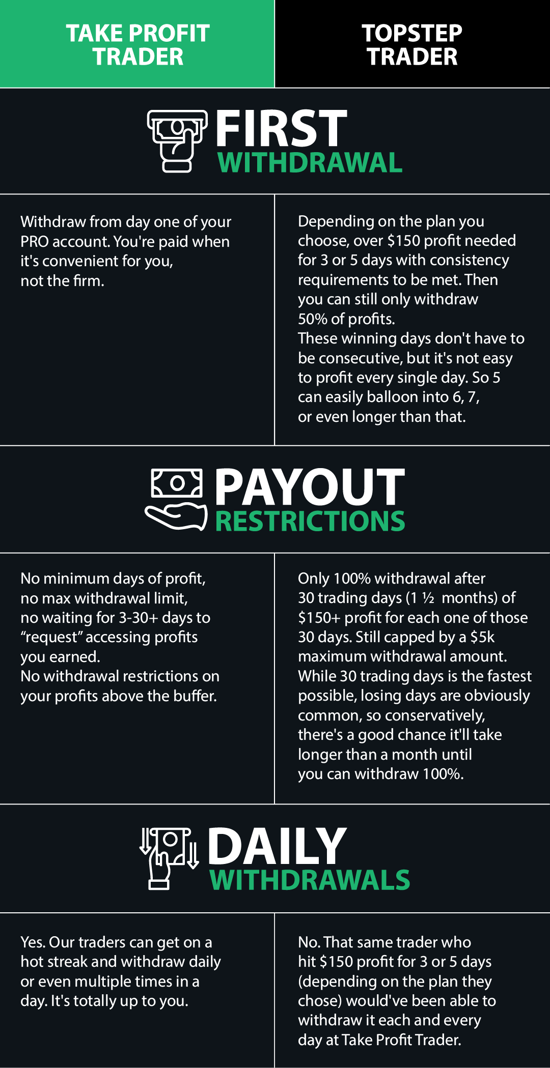 “Take Profit's trading rules are designed to help you pass the challenge and start making money as soon as possible. Being able to withdraw earnings daily is such a huge perk.”